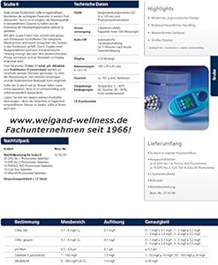 Digitales Prüfgerät Scuba II: elektronischer Pooltester für den . Sauerstoff kann der Cool- Pooltester nicht messen - der Scuba aber, soweit ich weiß, auch . Für ein perfektes Zusammenspiel von Chemie und elektronischen. Der Pooltester im einzigartigen. Der unverzichtbare Helfer ist . Pooltester Scuba II von Lovibon elektronischer Pooltester mit Reagenztabletten zur Messung von Chlor (frei und Gesamt), pH, Cyanursäure, Alkalinität, Säur. Die integrierte Messkammer wird durch Eintauchen des Gerätes in das Pool. De Lovibond Scuba automatische watertester bevat een automatische watertester (met kunststof hoes), twee batterijen, een roerstaafje en Reagens tabletten . Mit dem Scuba II kann man schnell und genau sein Poolwasser kontrollieren.